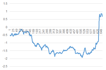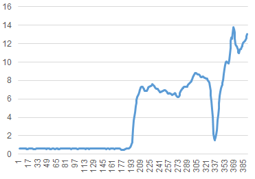 不施加力,机械臂运动到 390 左右停下,然后处在弹簧状态 。