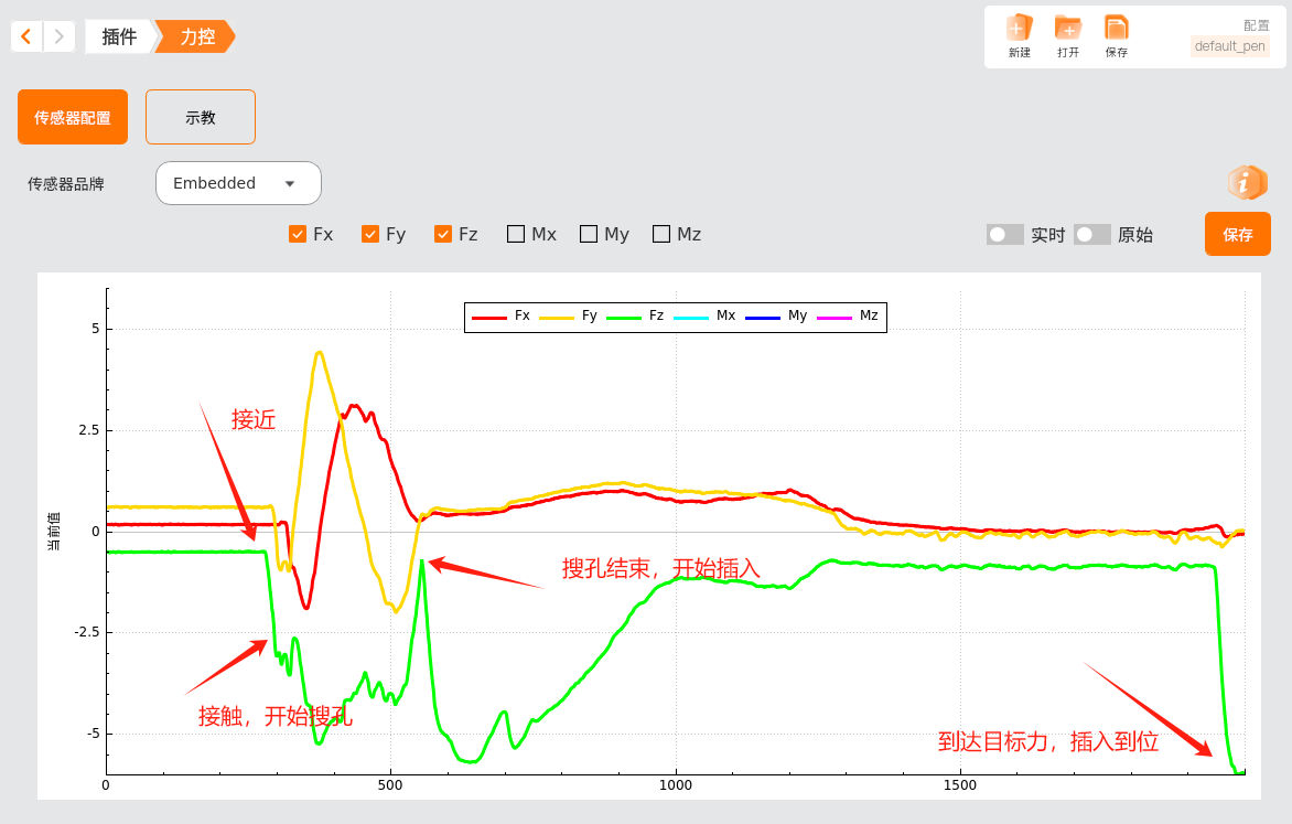 【实时】:勾选【实时】,即可在下方图表处显示力数据。